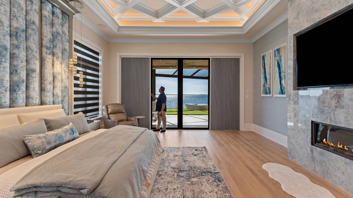 Motorized blackout shades provide light control and energy savings, perfect for bedrooms or media rooms in Babcock Ranch homes.