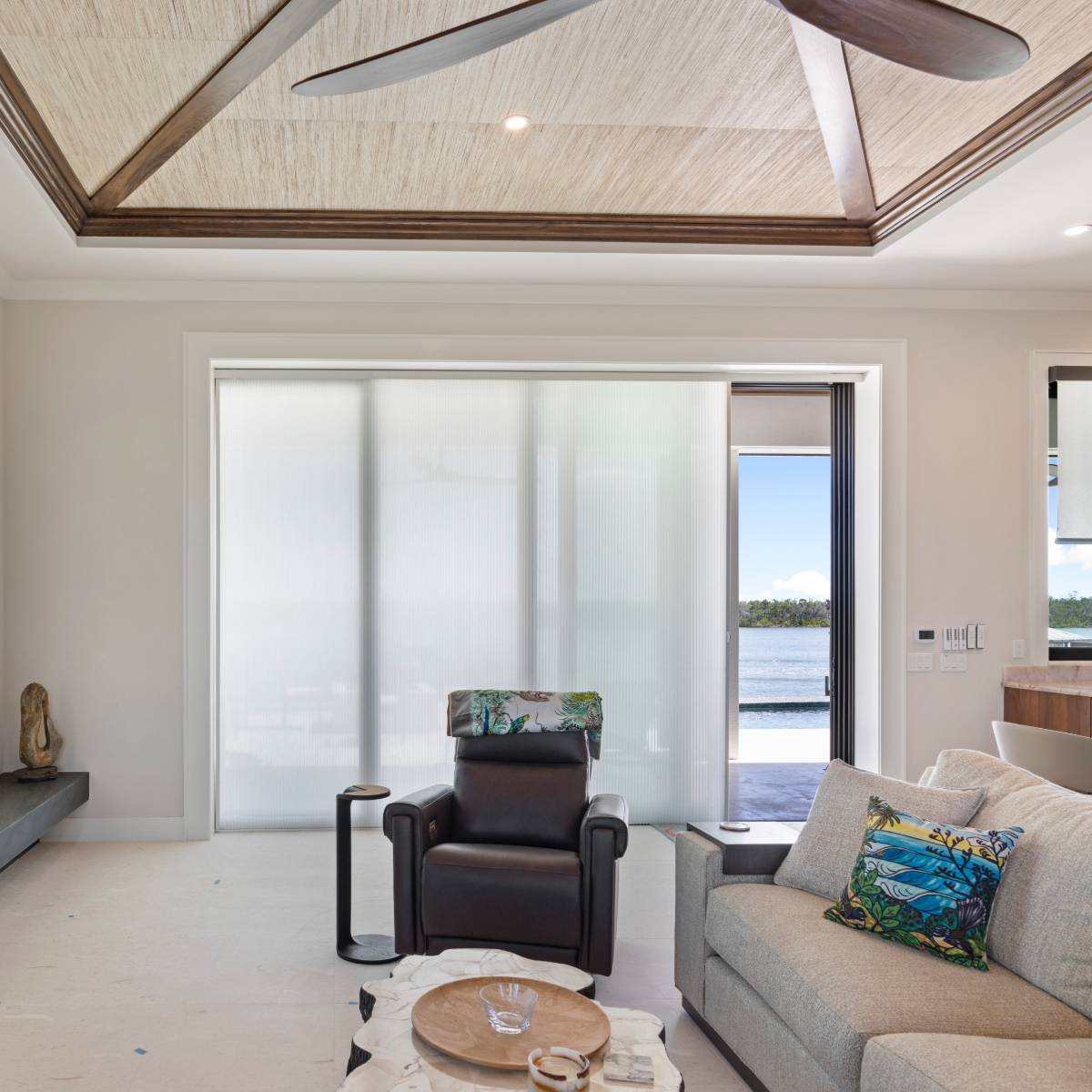 Clean-lined roller shades, minimalist shutters, and light-toned honeycomb shades align well with Babcock Ranch’s sleek architecture.