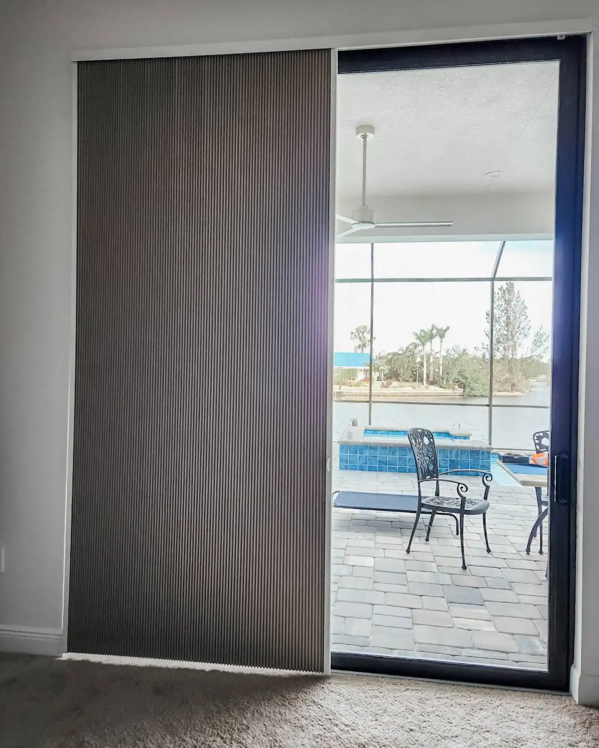 Outdoor solar shades and vertical track blinds offer UV protection and privacy while withstanding Cape Coral’s moisture-rich air. Perfect for lanais and pool enclosures.