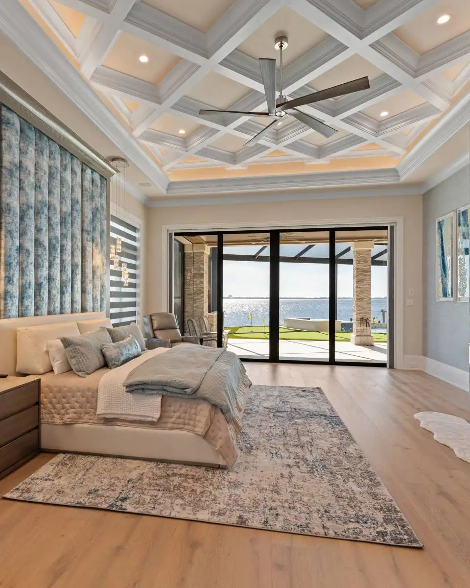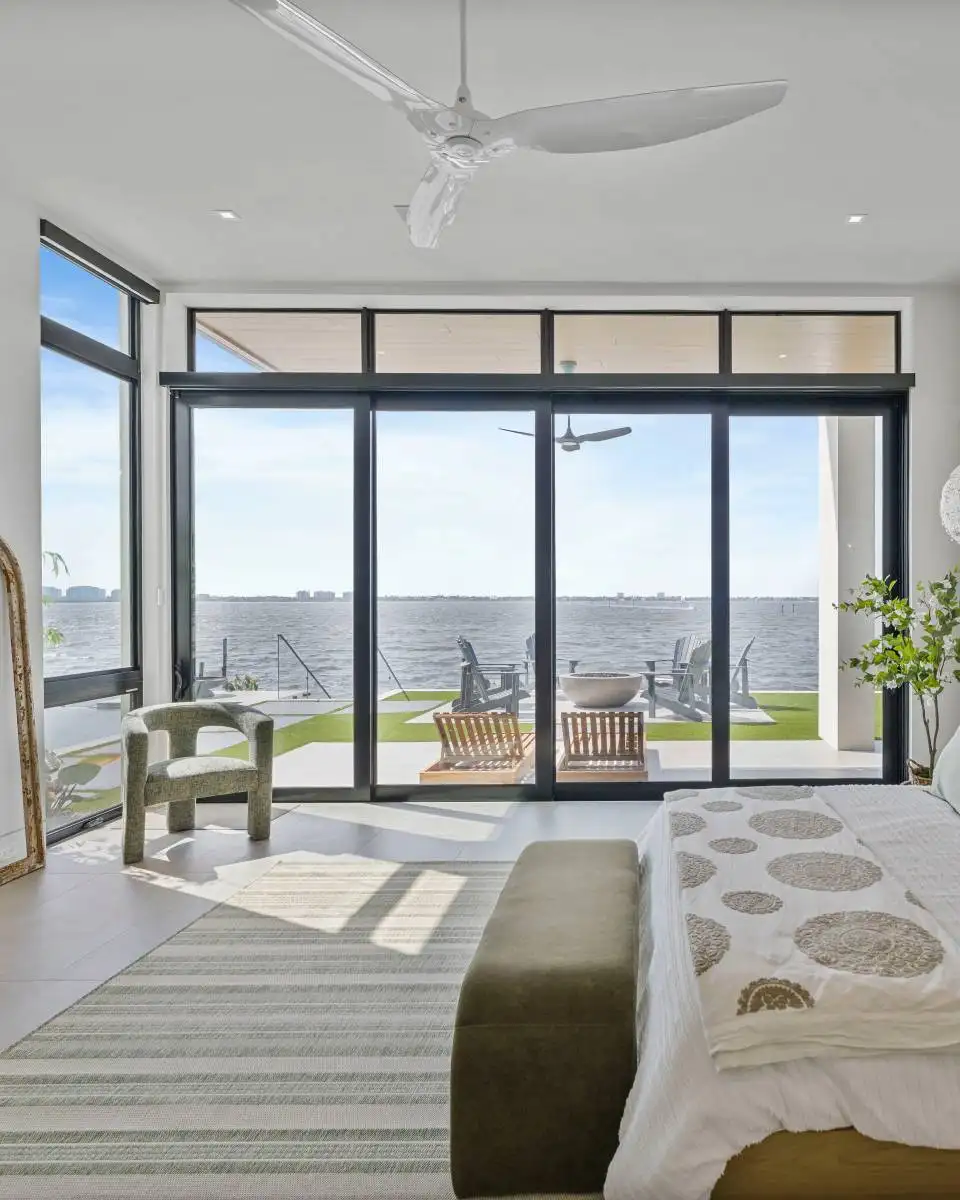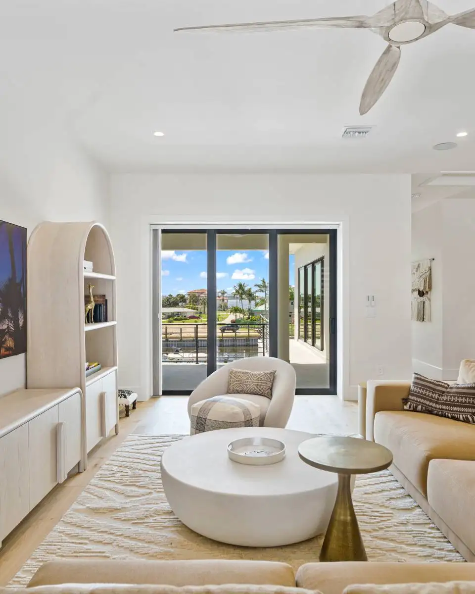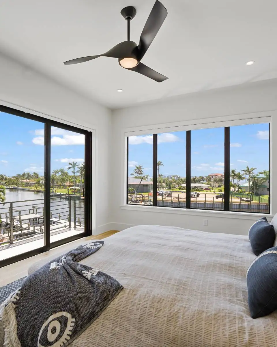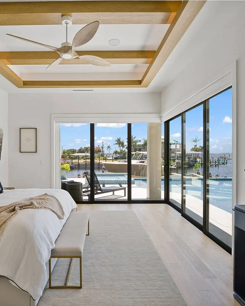 Solar screen shades and motorized sheers provide glare control while preserving views of the Gulf or canals.