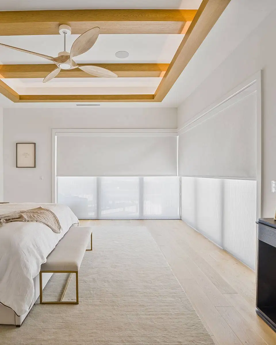 Honeycomb and dual-layer solar shades reduce heat gain and lower cooling costs in sunny rooms.