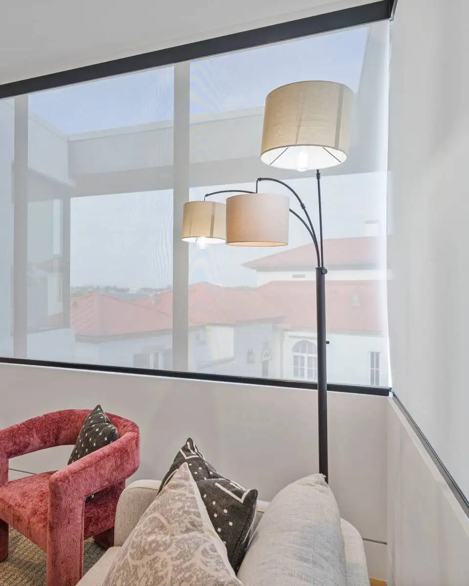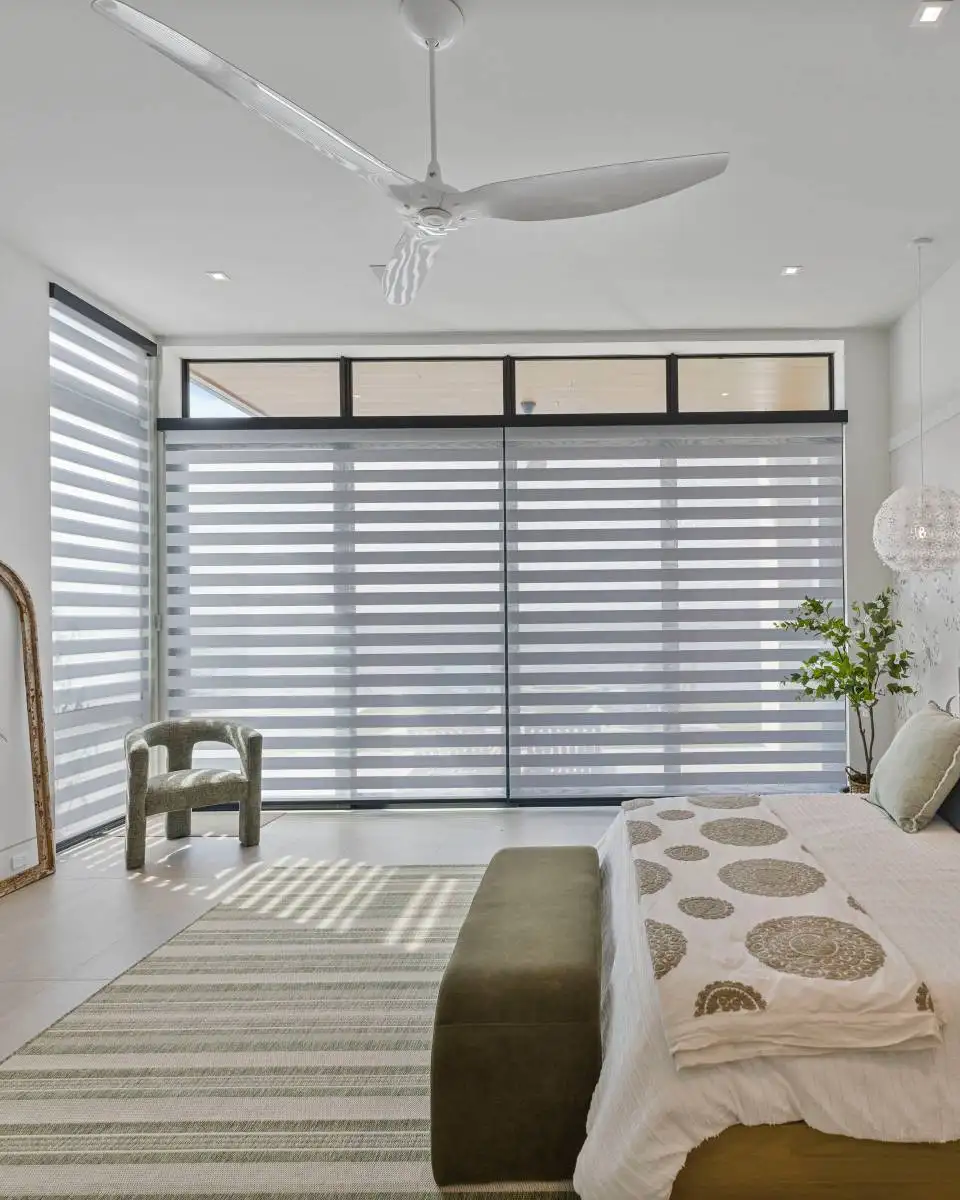 Dual-layer and solar screen shades block harsh UV rays and reduce fading in luxury interiors.