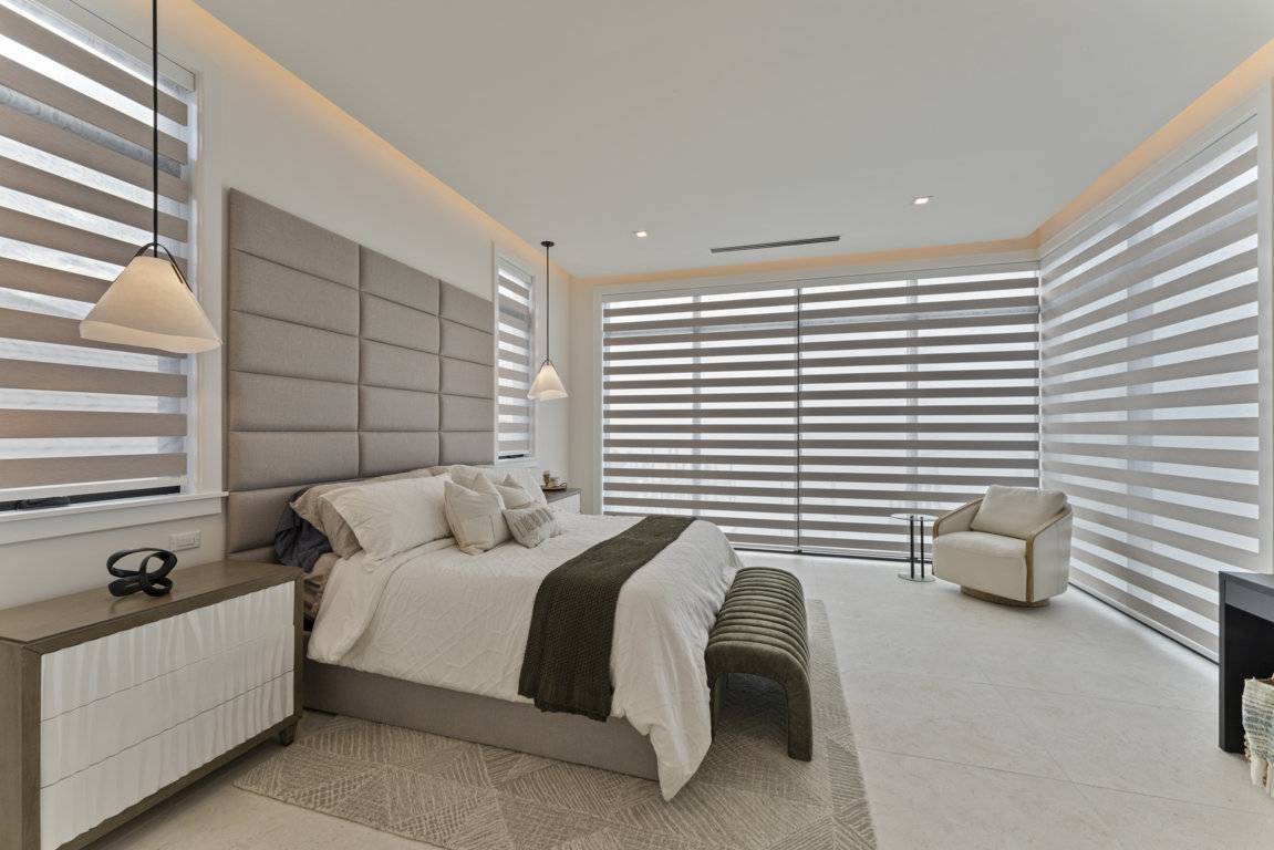 Choose from Roller, Solar, Zebra, or Cellular Shades—each crafted locally, measured precisely, and installed by our in-house team. Every design blends minimalist elegance with modern function, offering UV protection, fade resistance, and motorization options compatible with Alexa, Google Home, or Control4 systems.